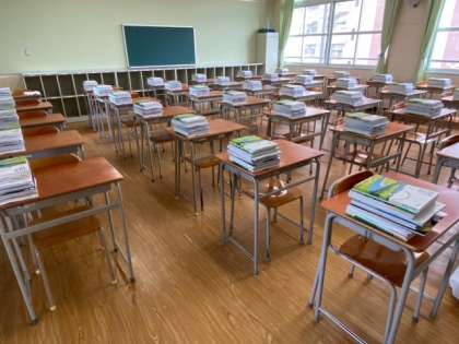 教室には、新入生の教科書が並べられています。明日の入学式を待つばかりとなりました。