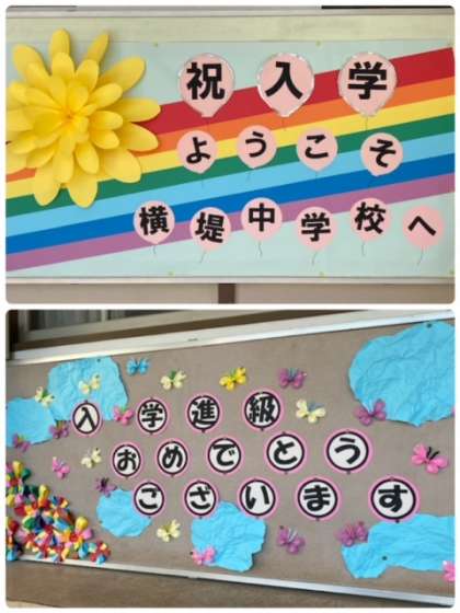 保健室や図書室の前には、歓迎の掲示板が飾られています。