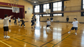 体育館では、男子バスケットボール部が練習を行っています。昨日は1年生の仮入部があり、男バス部の参加人数が一番多かったようです。今日は、2・3年生で練習を行っています。
