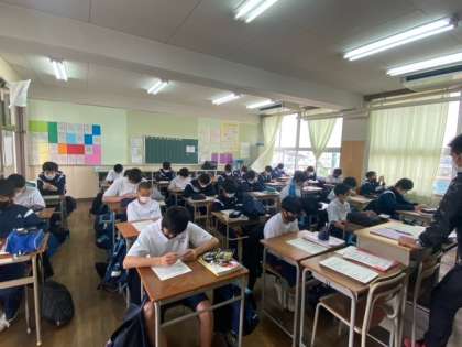 2年生の男子保健体育の様子です。授業では、保健と体育がありますので、体操服はもちろんのこと、保健の教科書や体育資料集、ファイルを準備しておきましょう!