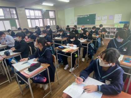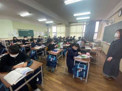 2年生の国語の授業では、教科書冒頭の詩「名づけられた葉」を学習しています。2年生になり、新しいノートを使っている生徒が多く、とても丁寧に書いています。最初の想いを大切にして継続していきましょう!