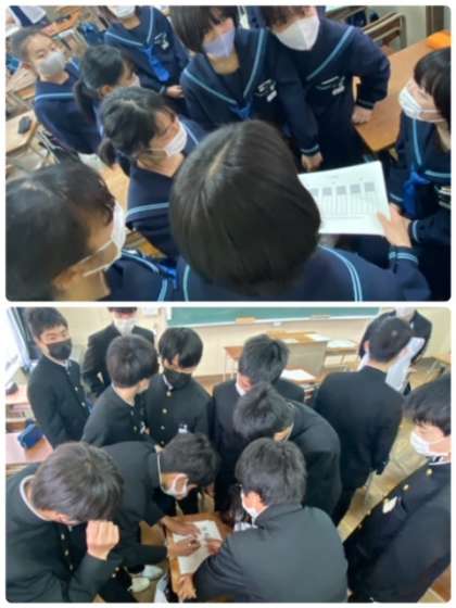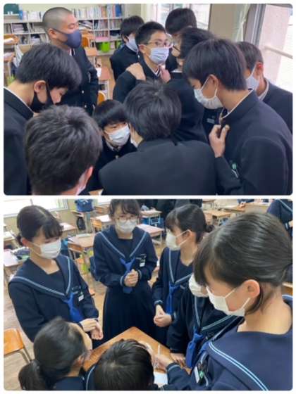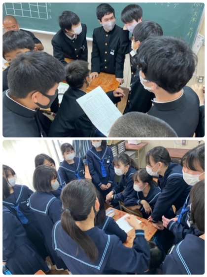 3年生の特別活動の時間では、修学旅行の決めごとを行っています。バスの座席、ラフティング班、宿舎班などです。新型コロナの影響で、制限されるところもありますが、中学校生活一番の思い出となるように取り組んでいきます。