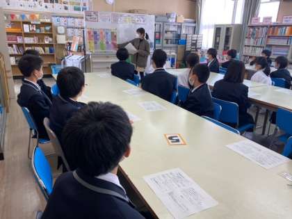 1年生の国語の授業では、図書室ガイダンスを行っています。本校に、図書館支援員が毎週火曜日に来校しています。図書室は授業でも活用しますし、昼休みや放課後に開放されていますので、どんどん利用してください。