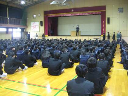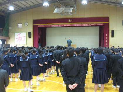 3月2日(月)、3学年全員が集まる最後の全校集会となりました。