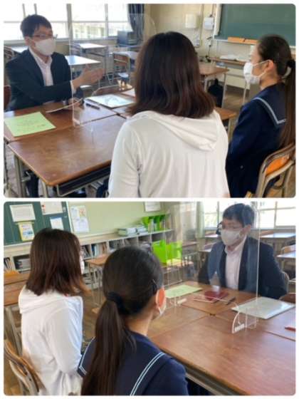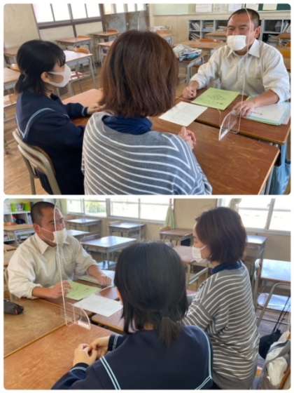 3年生は、今日まで希望制で個別懇談会を行いました。年度当初は、家庭訪問を予定しておりましたが、今般の状況により懇談会といたしました。進路についてのお話などをすることができているようです。