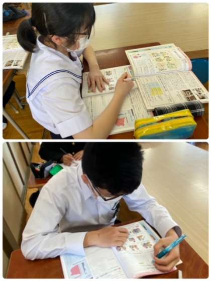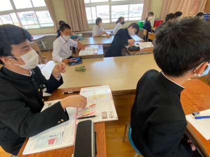 3年生の家庭科の授業では、家庭のはたらきの単元を学習しています。生徒自身の各家庭での仕事や役割を確認しています。学習内容が実生活に生かされるように指導しています。
