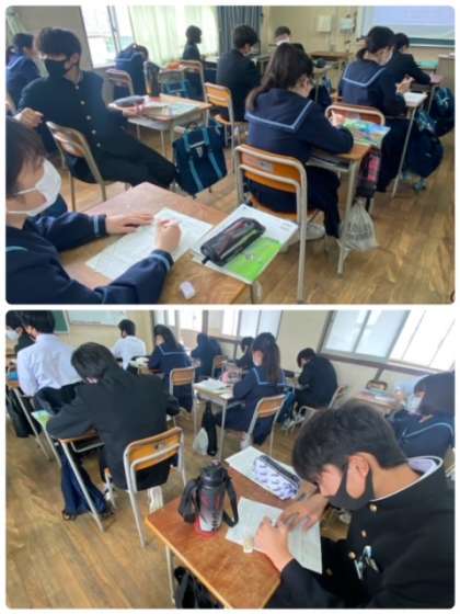 3年生の技術の授業では、情報のデジタル化について学習しています。アナログとデジタルについて理解し、デジタル化するためのデザインを考えて描いています。どんなふうにデジタル化されるのでしょうか、楽しみです。