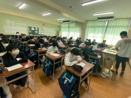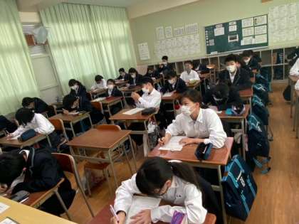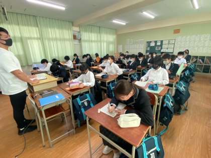 1年生の技術の授業です。技術分野の目標は、技術の見方・考え方を働かせ、ものづくりなどの技術に関する実践的・体験的な活動を通して、技術によってよりよい生活や持続可能な社会を構築する資質・能力を育成することです。