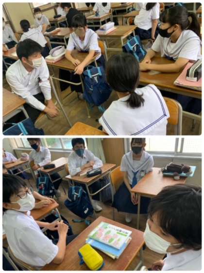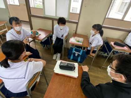 2年生の国語の授業です。グループ学習の発展的課題に取り組んでいます。ひとりひとりの知恵をグループで共有して、課題解決にむけてみんなで思考しています。