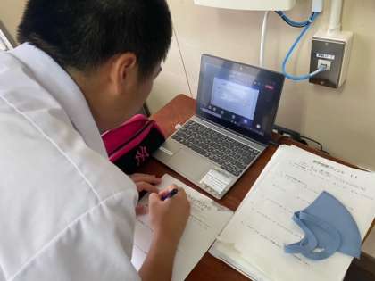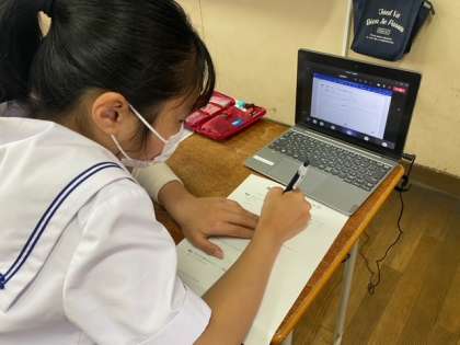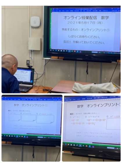 本日から、午前中の1コマをオンライン授業配信を生で行っています。通信環境など不安定になる場合もありますが、双方向での授業ができています。午後からの登校で、補充説明等をしていきます。