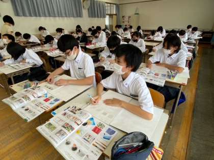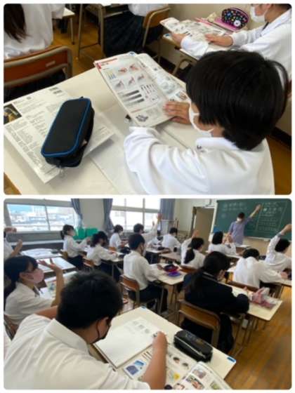 1年生の美術の授業では、鉛筆を使って描く学習を行っています。教科書や資料集の見本のように描けるように、書き方のポイントを習っています。