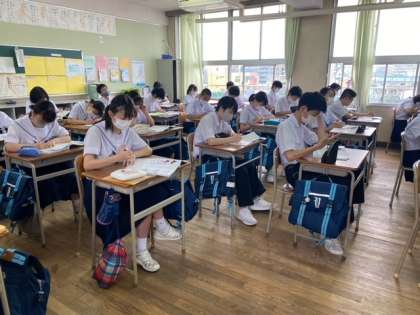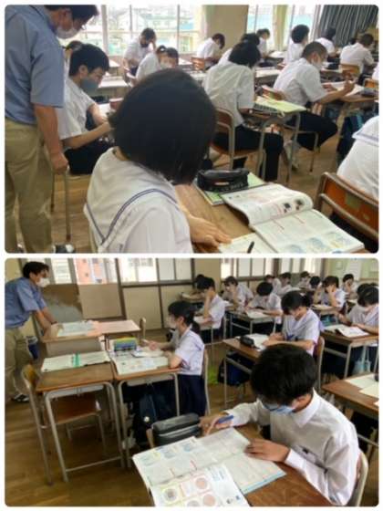 3年生の理科の授業です。梅雨入りでどんよりした空模様ですが、授業をしっかり受けています。