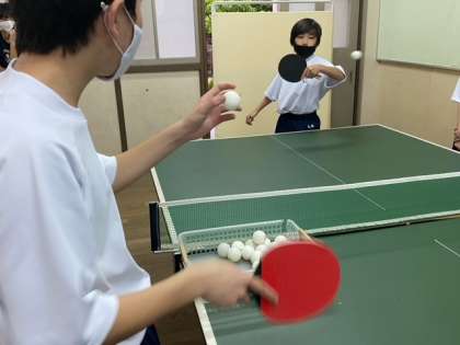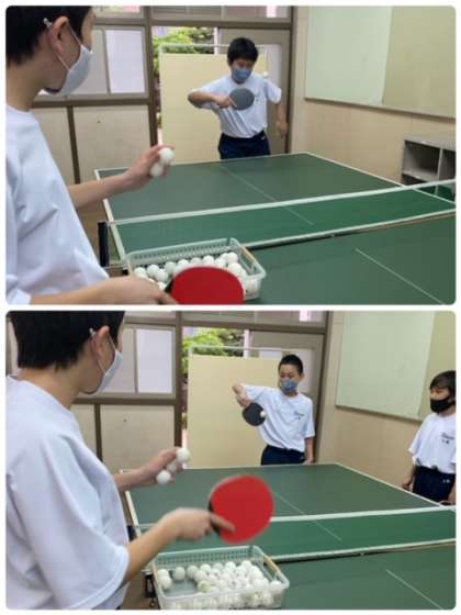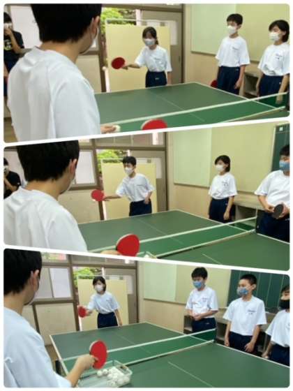 1年生の部活動体験がはじまりました。先輩たちが丁寧に教えてくれながら、多球練習を行っています。