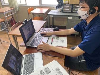 3年生のオンライン授業配信の様子です。通信状態が不安定な状態が発生しましたが、何とか配信ができました。午後からの授業で補充学習を行います。