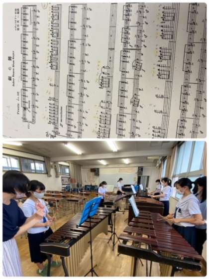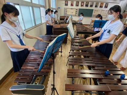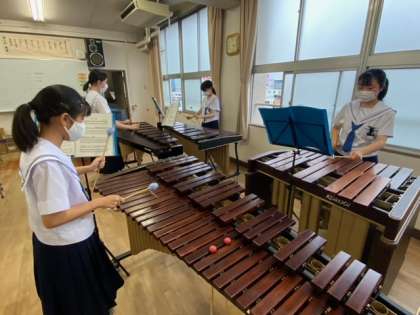 音楽部の1年生の部活動体験は、来週からとなります。マリンバの心地よい音色に癒されます。部活動休止の期間に、なまってしまった感覚を取り戻しています。