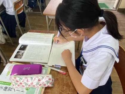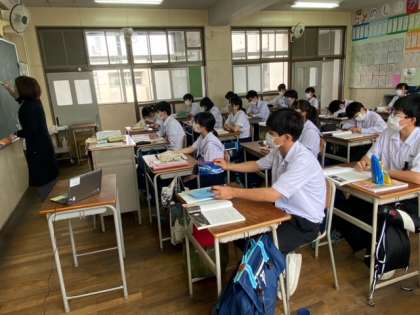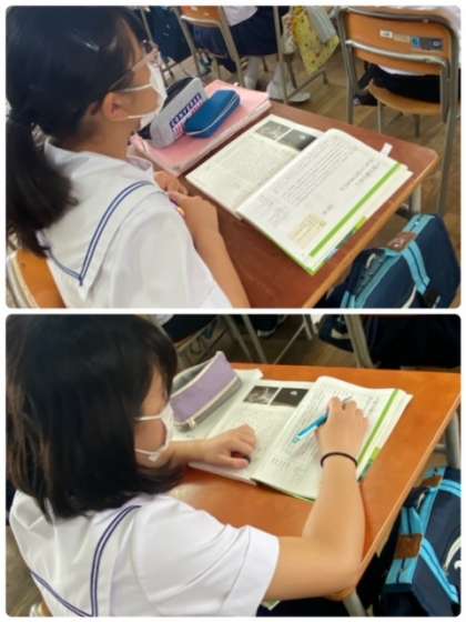 2年生の国語の授業では、説明的文章を学習しています。国語では、社会生活における人との関わりの中で伝え合う力を高め、思考力や想像力を養うことをねらいとしています。