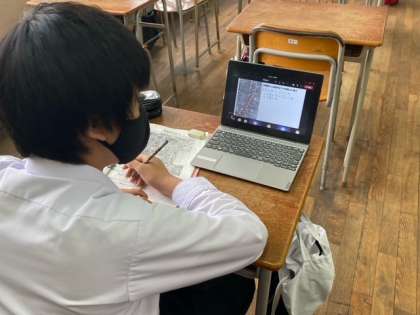 2年生のオンライン授業配信の様子です。地形図の単元の学習をしています。かなり細かい地図を提示しておりますので、どのように見えていたか等、アンケートに書いてください。
