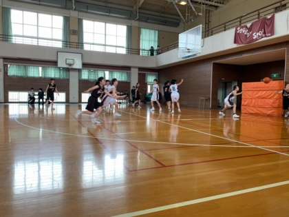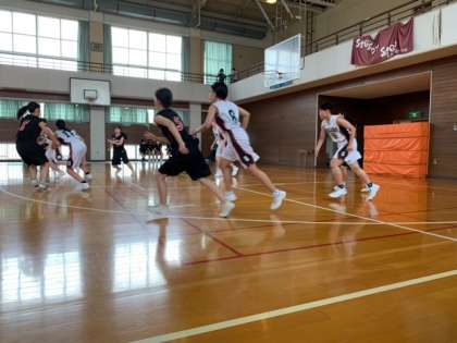 本日、女子バスケットボール部が三国中で春季総合体育大会5回戦、強豪三国中と対戦しました。2・3年生のメンバーで挑み、攻めの時間が短くなる苦戦を強いられました。みんなで一生懸命頑張りましたが敗退し、ベスト32となりました。