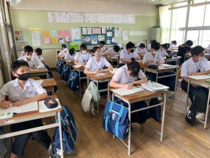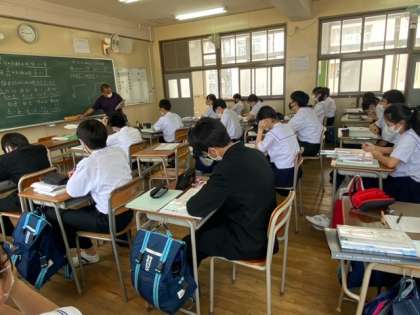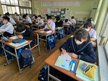 3年生の数学の授業です。明日は、全国学力・学習状況調査が実施されます。3年生を対象に行いますので、最後までしっかり解くようにがんばりましょう!