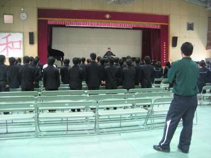 2時間目は、音楽科・浅井先生の指導により、式歌の練習を行いました。