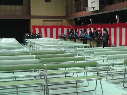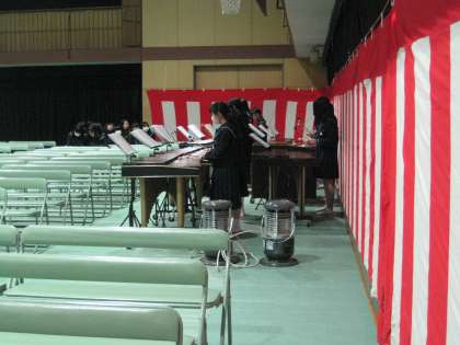 準備終了後は、音楽部の生徒が、明日の卒業式の演奏のために練習に取り組んでくれていました。