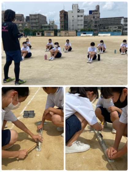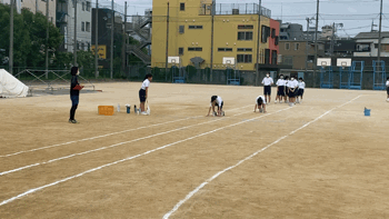 2年生の女子体育の授業では、100m走を行っています。スタートブロックを設置して、スタートダッシュを心がけます。身体の使い方を習得して、最後まで走り切りましょう!