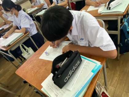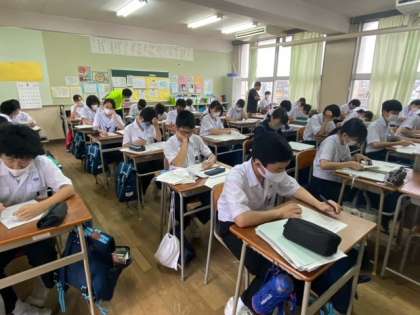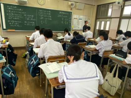 3年生の数学の授業です。数学を学ぶとは、問題を解決する方法と能力を身につけることにあります。実社会で起こる問題を解決するために、まずは数学の問題を解決しなければなりません。