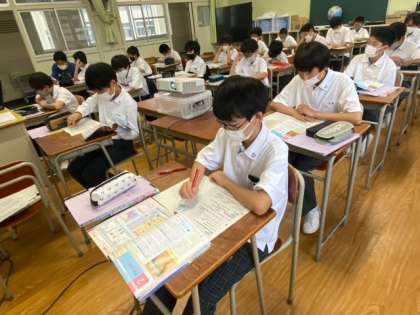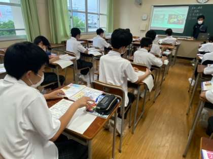 1年生の男子体育の授業では、保健を学習しています。保健を学ぶとは、健康で身体的、精神的、社会的に良好な状態で、豊かな明るい生活を送るためです。「体力の向上」「心と身体を動かすこと」「運動や健康について」学びます。