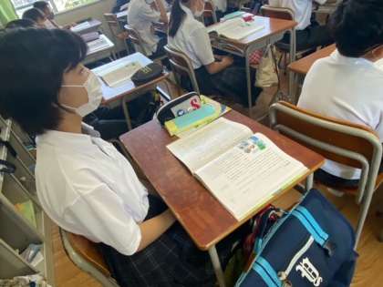 1年生の道徳の授業です。正義と公正さを重んじる、公平な社会をつくるように学びを深めています。