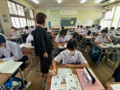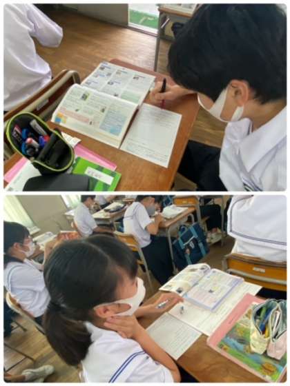 2年生の国語の授業です。短歌の解釈について、自分の意見と友達の意見を交流しています。いろんな情景が浮かんできているようです。