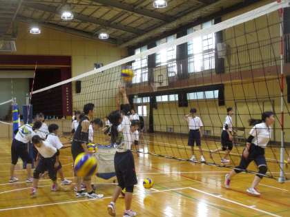 期末懇談会の時間帯にも生徒たちは部活動で汗を流しています。午後からの雨でグランドは使用できなくなりましたが、体育館ではバレー部、格技室では卓球部が活動していました。熱中症対策をしっかりして、厳しい夏の練習を乗り切ってほしいと思います。