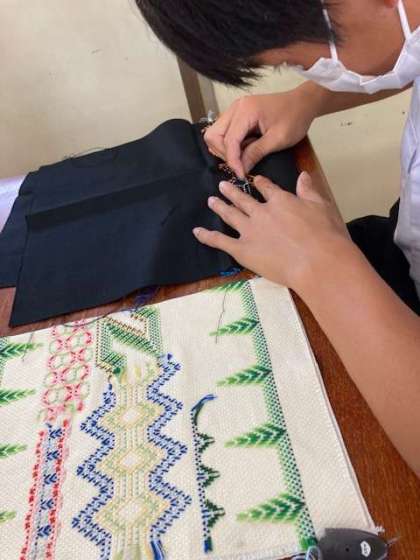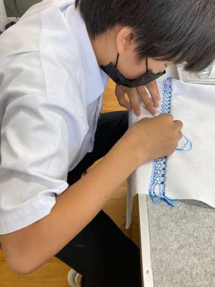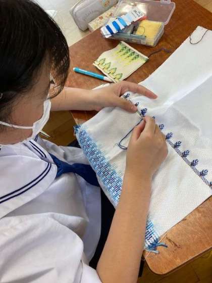 2年生の家庭科ではスウェーデン刺しゅうに取り組んでいます。
