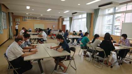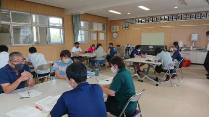 研究授業のあとは、授業者と参観者による意見交換により授業研鑽を行います。