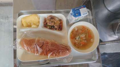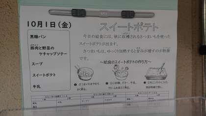 毎日、給食当番が配膳室前までおかずなどを取りに来ます。