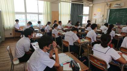 座標をよみながら、面積を求める。みんな積極的に発言しています