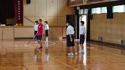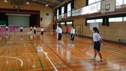 女子の体育はバドミントンをしています。