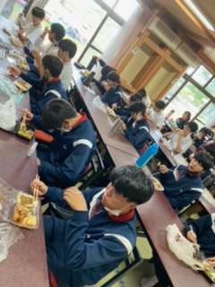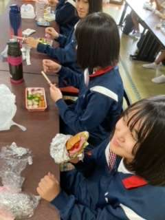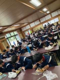 みんな嬉しそうに家族の方に作っていただいたお弁当を食べています。