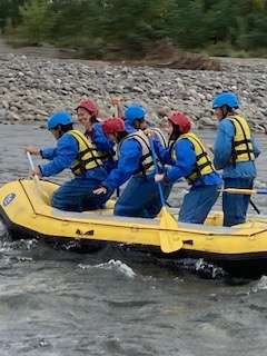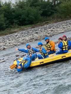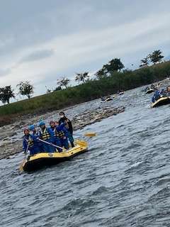 少し肌寒さはありますが、みんな元気いっぱいラフティングを楽しんでいます。