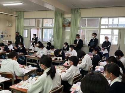 1年生の社会において、教育実習生の研究授業です。歴史 奈良の都と人々のくらしについての授業です。