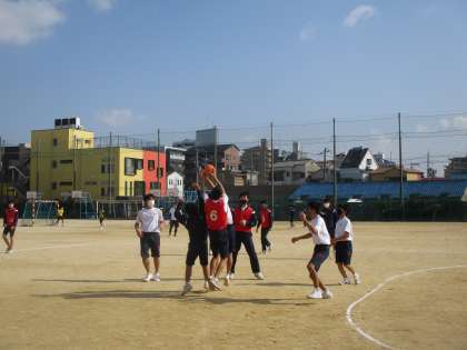 写真は本日(2日)の2時間目、3年生男子の体育の授業です。グランドでハンドボールのゲームを行っていました。さすが3年生!。元気いっぱいのプレーが見られました。