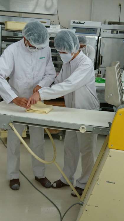友栄食品興業ではクリームパン作りを体験させてもらっています。