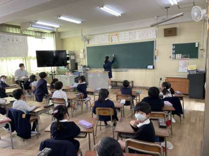 横堤小学校では、授業をさせてもらったり、丸付けやプリント制作をしております。