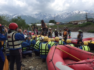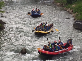 昨日の夜の雨で水量は豊かです。流れも普段より勢いがよくその上無風。炎天下でもなくラフティングには絶好の日和だとのインストラクターから話がありました。さて、どんな体験になるかな?楽しみです。12:50 開始