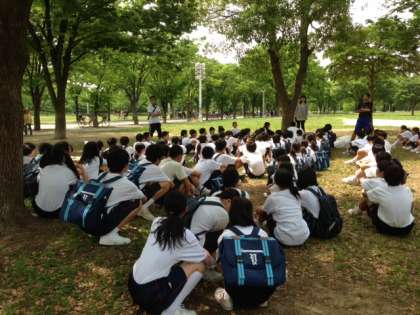 中学校生活ににも慣れてきました。集団行動きちんとしなければならないことはわかっているのですが、時には勝手なことをしてしまいそうになります。でも、学級のリーダーが注意し、みんなをまとめてくれています。今日はのびのび緑地で活動です。(15日)
