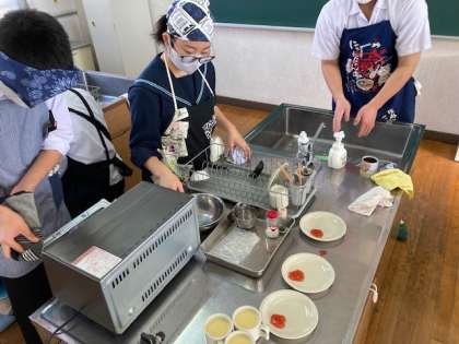 コロナ禍の為、中学に入ってから初めての調理実習となりましたが、どのクラスも大きな失敗もなく作り終えることができました。