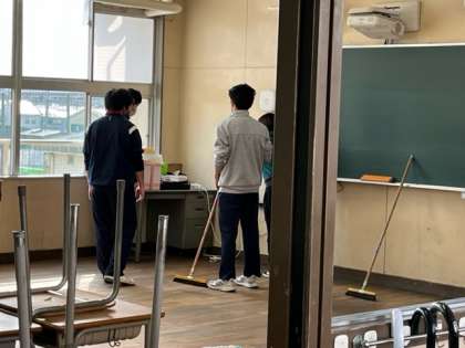 お世話になった教室に感謝を込めて丁寧に掃除をしてくれています。