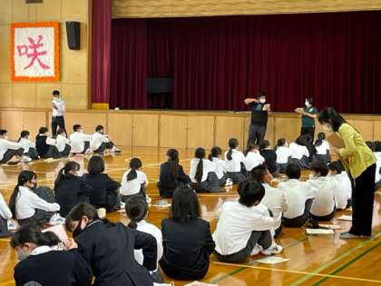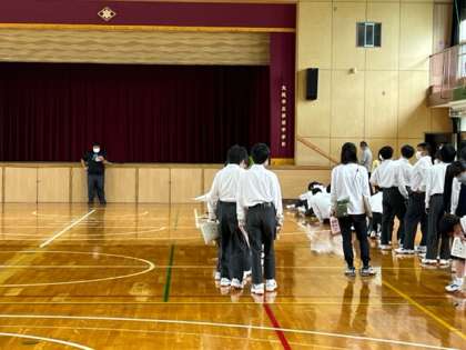 カッター訓練のグループや、バス座席の確認と整列練習をしています。