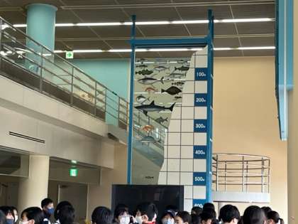 芝生が濡れているため、海の科学館にて昼食をとります。