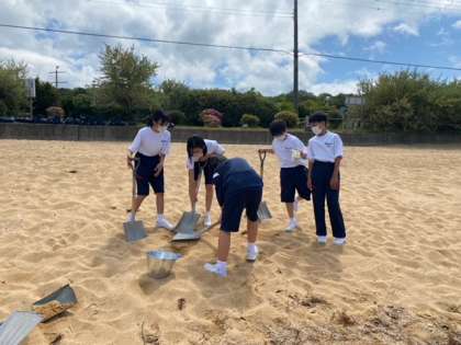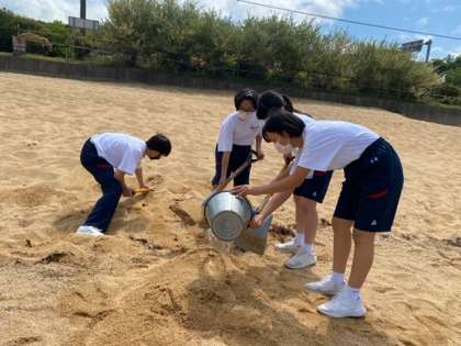 砂浜にて砂の造形にチャレンジしています。