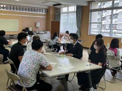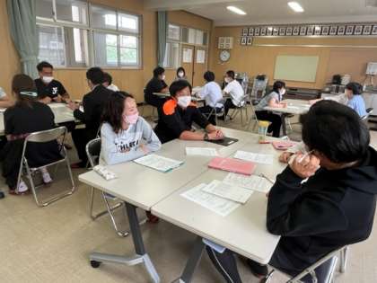 今日の研究授業を参観したうえで各教科に分かれてお互いに意見を出し合いながら、より良い授業づくりに向けて話し合いをする場です。